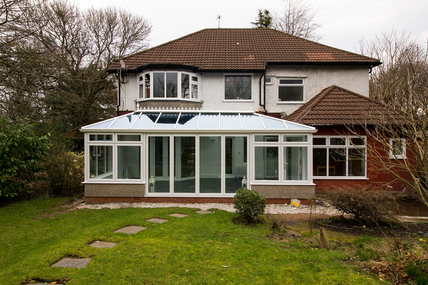 Our client wanted to add a light filled conservatory to the rear of their large detached period property in Wirral. We designed a Georgian style hipped roof conservatory in keeping with the style of their home, featuring ornate detailing, Celsius One performance glass and Centor aluminium bifold doors.