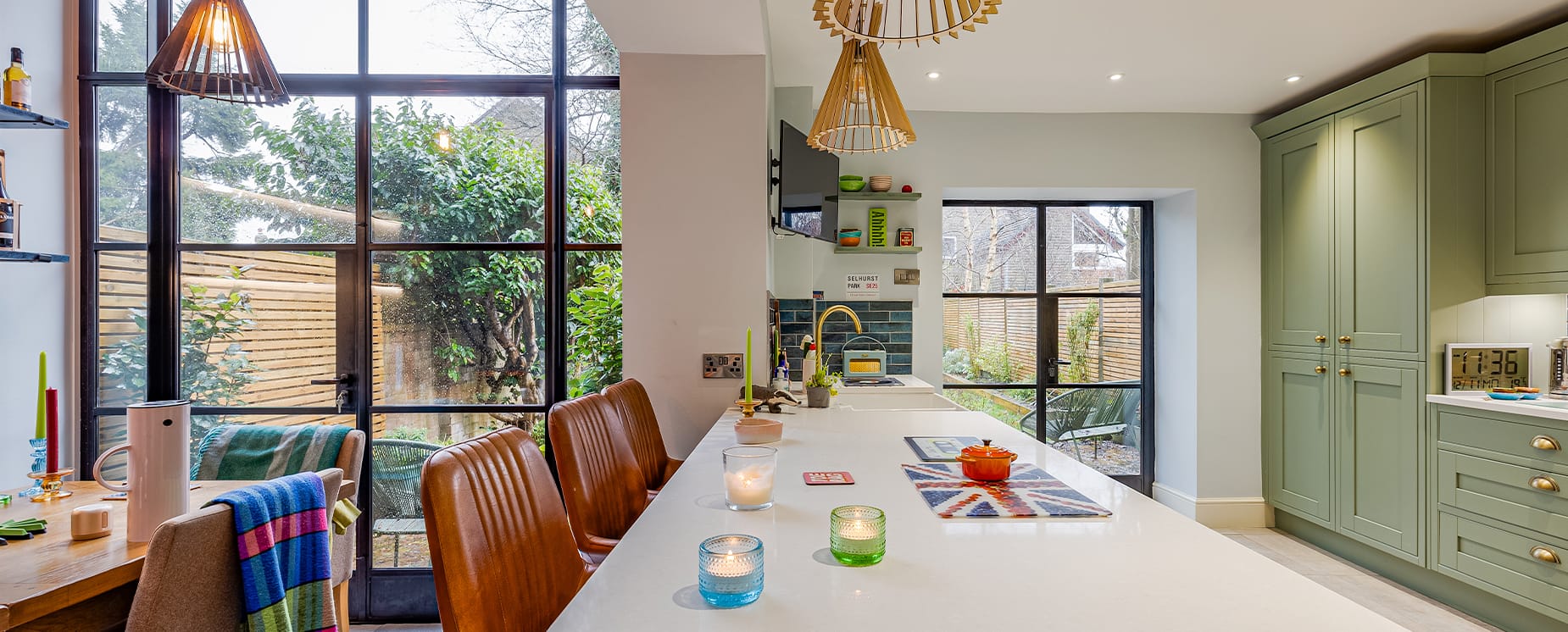 The selection of Crittall Steel doors from the John Knight Glass Showroom was driven by the clients' admiration for the bespoke handmade quality and style. The doors have not only added a visual appeal but have also contributed to improved warmth in the kitchen-diner, seamlessly integrating into the home.