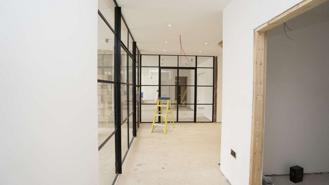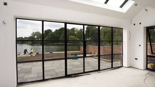 The windows and doors have all been supplied from our own aluminium range and have been custom made with the thinnest glazing bars possible and finished in black to tie in with the Crittall screens perfectly.