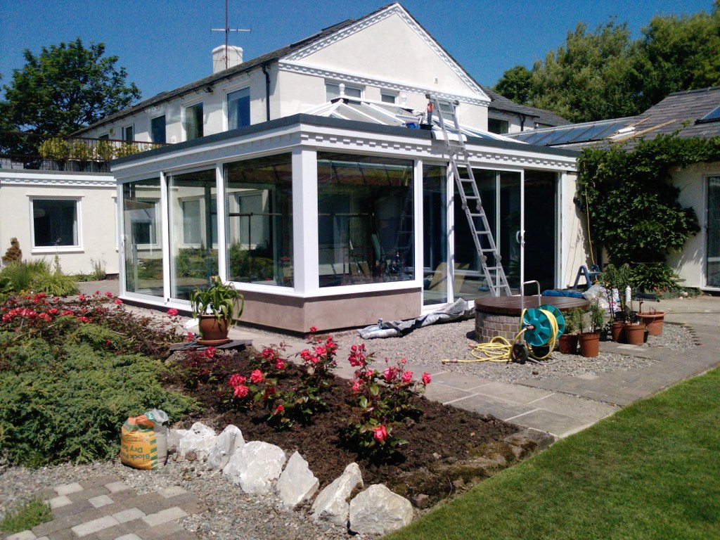Design and Build glazed area to Dinning room ; roof - K2 PvcU roof system glazed with Celsius one U value 1. Windows ; White PvcU 2800 - triple glazed U value .9 Liverpool pvcu windows Sash windows liverpool